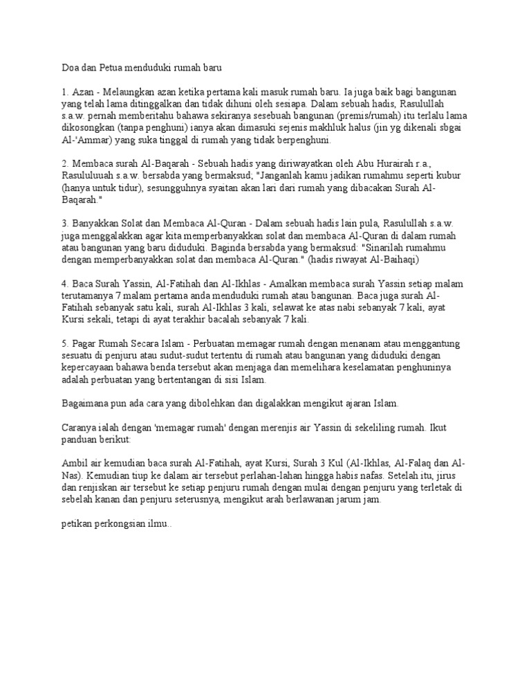 Doa Dan Petua Menduduki Rumah Baru Pdf